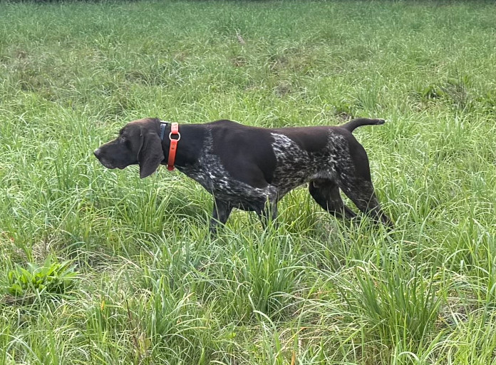 Ilex did his VGP with overnight blood track before the age of 18 months. He stays in check with his handler during driven hunts showing that he is a great cooperative dog. Ilex has an outstanding nose and knows how to use it to find game. Before leaving Germany, he was in the home with 3 small children, the youngest a 3 year old. He is a gentle dog. Ilex has a diverse background in his pedigree and would compliment most females.